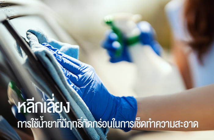 น้ำยาเช็ดกระจกที่มีแอลกอฮอล์หรือแอมโมเนียจะทำลายชั้นเคลือบของฟิล์ม ทางที่ดีควรใช้น้ำเปล่าชุบทำความสะอาดก็เพียงพอแล้ว